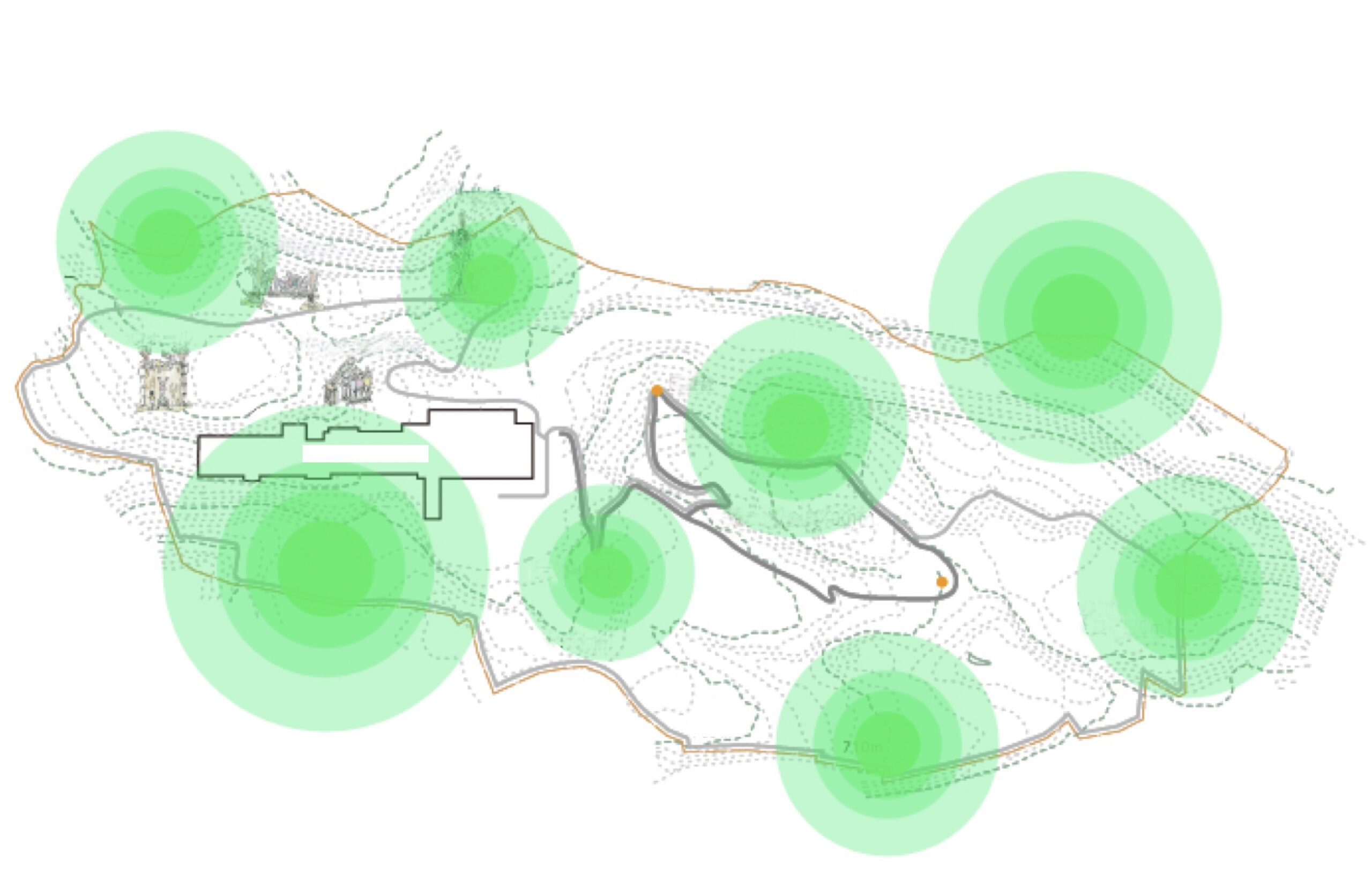 ※緑の部分がビーコンの設置場所。季節の虫や時間帯等で様々な昆虫を表示させることができます。