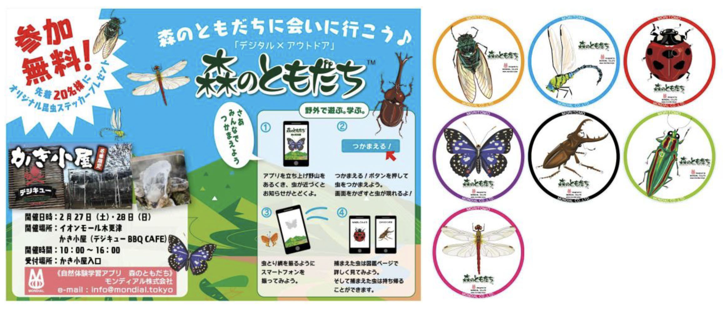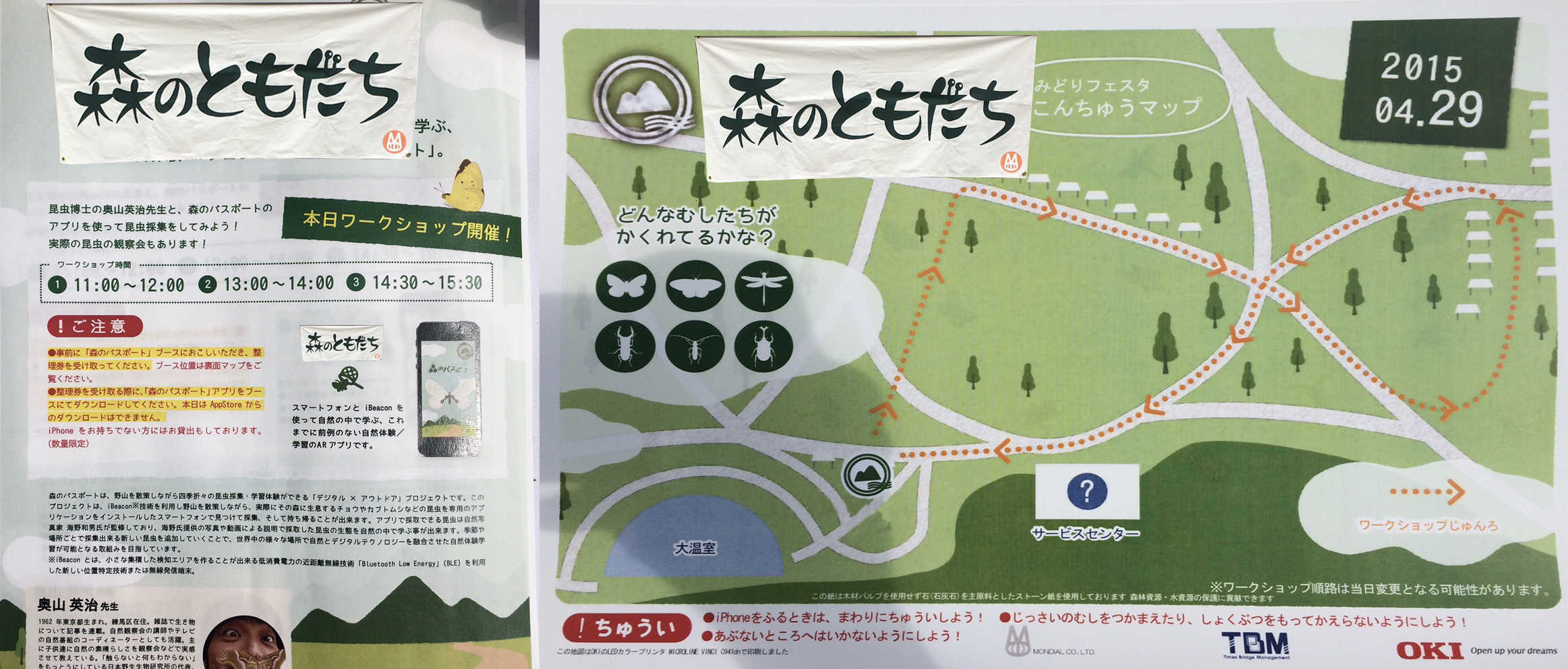 各地域にBeaconを設置(1から2匹など)し、地域毎でとれる虫を変更します。各地域を回り昆虫をとることで、学習しながら虫とりスタンプラリーとしても楽しめます。すべてGETした人には森とも博士号を与える等、意欲的に楽しく学べるイベントとしてのポテンシャルがあります
